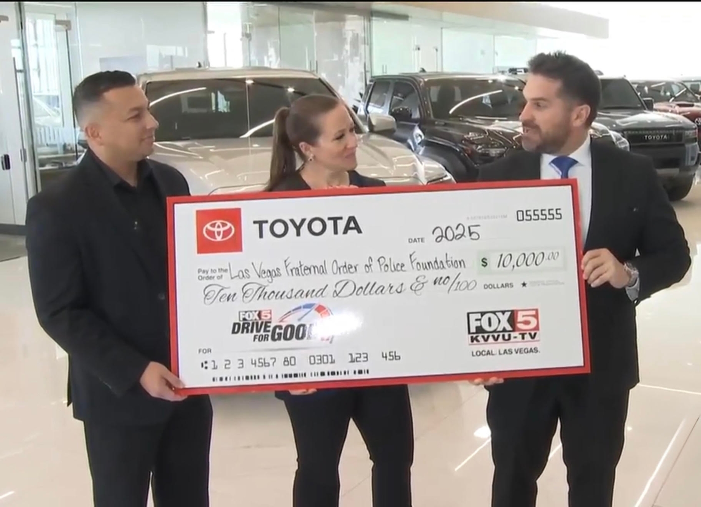 The Las Vegas FOP Foundation would like to extend our sincere gratitude to Centennial Toyota, the Toyota Dealer Association, and KVVU FOX5 Las Vegas for selecting us as a recipient of the FOX5 Drive for Good segment and for their generous $10,000 contribution.Dec 9, 2025